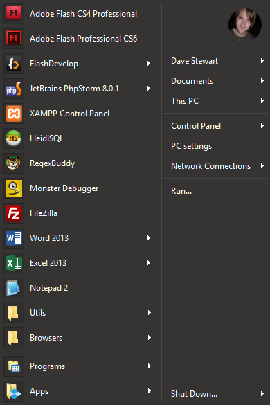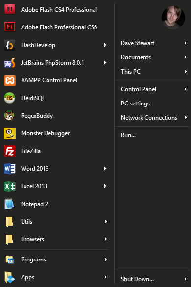 Ideally (though this is probably a conversation for another thread) there would be a Windows 10 specific version of Classic Start Menu which would emulate as closely as possible the native setup but with better options for things like hierarchical All Programs.
